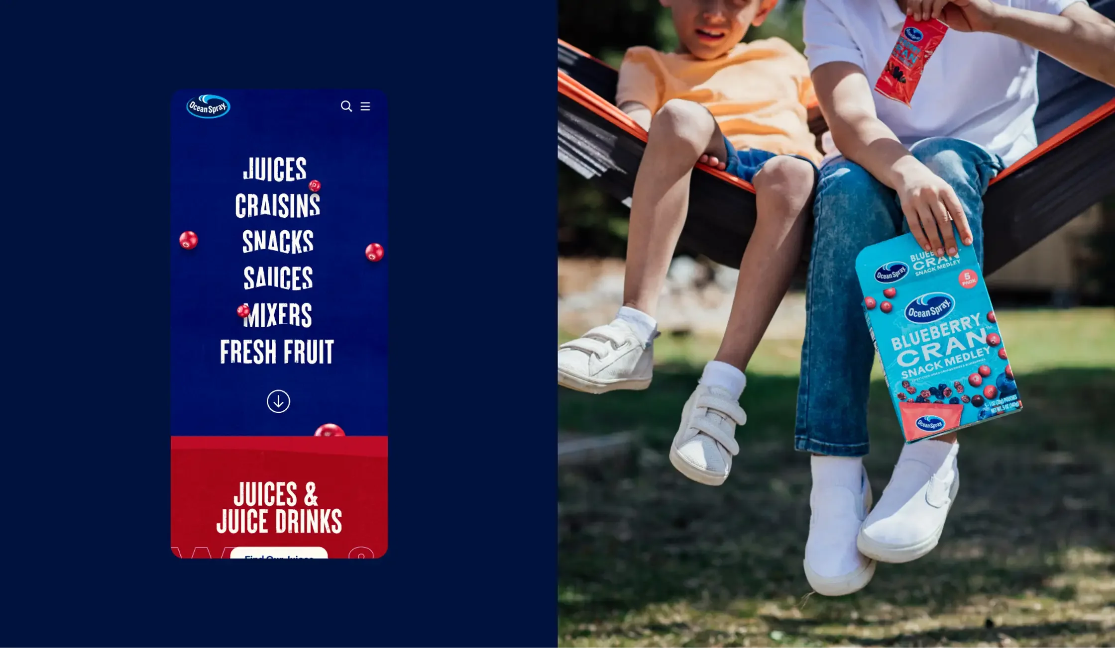 Background: Ocean Spray's new brand identity was way bolder (and weirder) than their website. Most visitors were ending up there by accident, after searching for Ocean Spray products and recipes.
